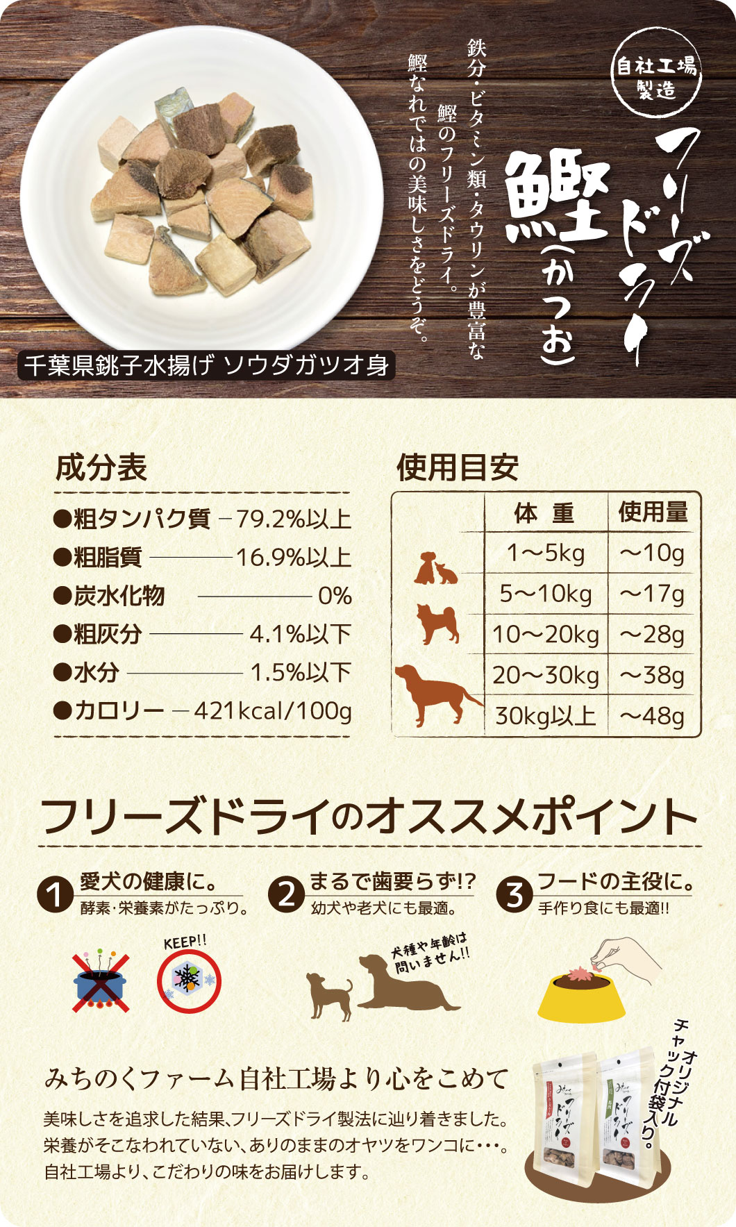 フリーズドライ 鰹(かつお) ツイートする シェアする 販売価格: 1,120円(税込み) 会員価格 (税込み) 通常価格 (税込み) 在庫 商品コード FDKATUO050 JANコード 50g 50g×3p 300g 1kg(500g×2) 数量 - + 在庫切れのため注文いただけません。 お気に入りリストへ追加する カテゴリー 魚・貝類 キャンペーン [美味しさの追求]自社工場オリジナル商品| 自社オリジナル「フリーズドライ」 Recommended Items こんな商品も買われています フリーズドライ 銀鮭 1,980円(税込み) フリーズドライ 鮪(まぐろ) 1,340円(税込み) フリーズドライ きびなご 1,120円(税込み) フリーズドライ 鱈(たら) 1,460円(税込み) フリーズドライ 鰆(さわら) 1,480円(税込み) 【現在欠品中】 フリーズドライ のどぐろ 1,980円(税込み)